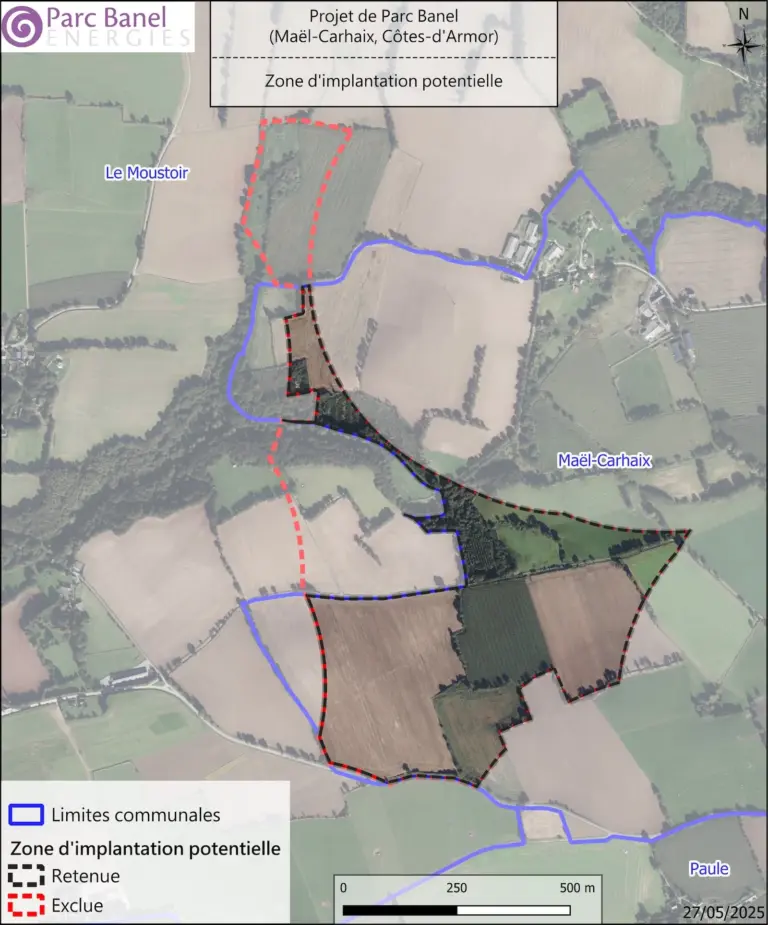 Le projet éolien de Parc Banel, dont la zone d’implantation potentielle est située sur les communes de Maël-Carhaix et du Moustoir, a vu le jour en septembre 2019. Cette zone est définie par la réglementation imposant une distance minimale de 500 mètres des habitations. Le projet est né lors d’une première rencontre en septembre 2019, entre Galileo Énergies Nouvelles et les élus de Maël-Carhaix, dont le maire, Alain Marzin.